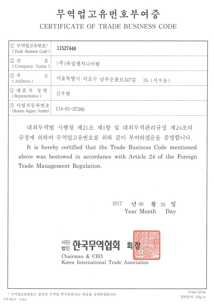 CERTIFICATE OF TRADE BUSINESS CODE Trade business ..