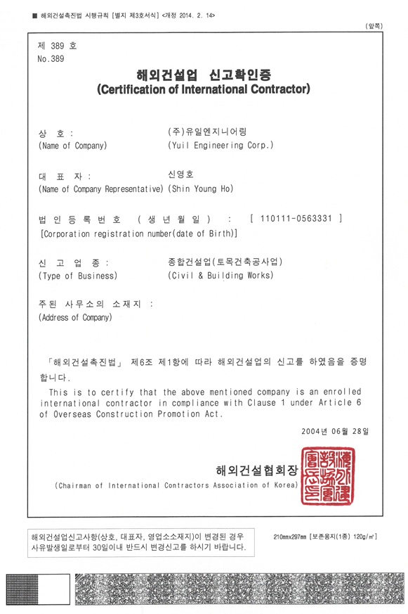 Certification of International Contractor Civil & ..