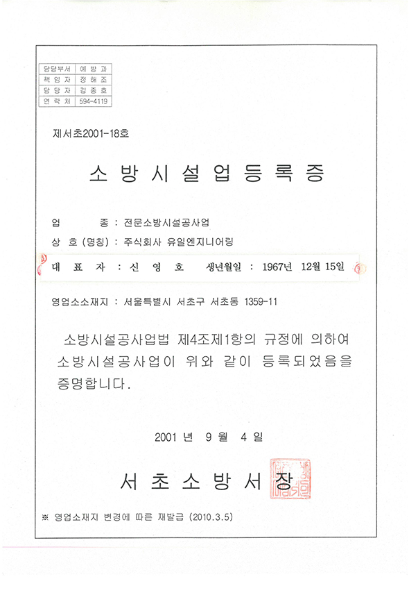 CERTIFICATE OF REGISTRATION FOR FIRE PROTECTION SY..