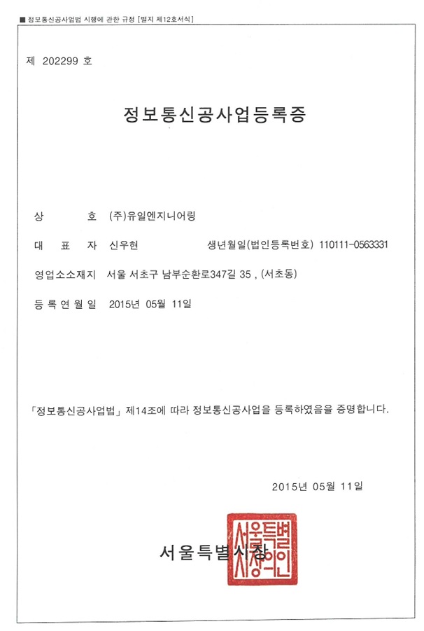 Á¤º¸Åë½Å°ø»ç¾÷µî·ÏÁõ Á¦ 202299È£
